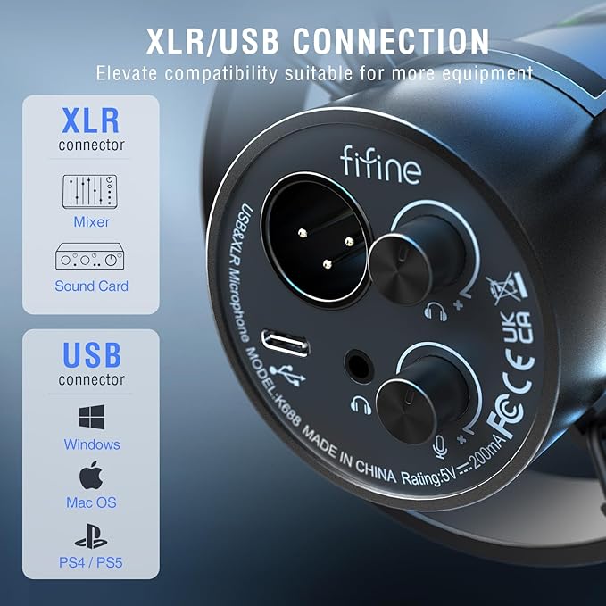 - [XLR and USB Connectivity] Provided with both USB and XLR connections, the podcast dynamic microphone kit for PC is a significant benefit for you to access podcast recording in different ways. You can choose a plug and play USB connection to quickly go into recording work. You can also upgrade your audio equipment by using the XLR connection with audio interface/mixer to enhance sound quality.