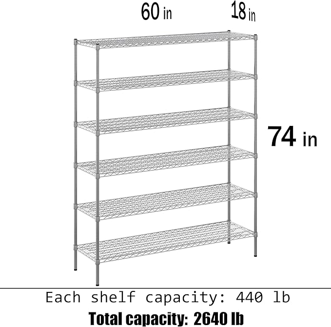 18" Deep x 60" Wide x 74" Height Wire Shelving Kit | 6-Tier | NSF Commercial Storage Rack Unit