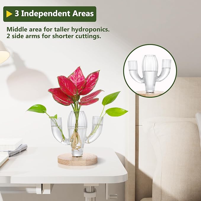 Plant Propagation Stations, Unique Cactus-Shaped Plant Propagating Vase, 3 Independent Areas for Various Plants, Gardening & Housewarming Gifts for Plant Lovers, Home or Office Decor