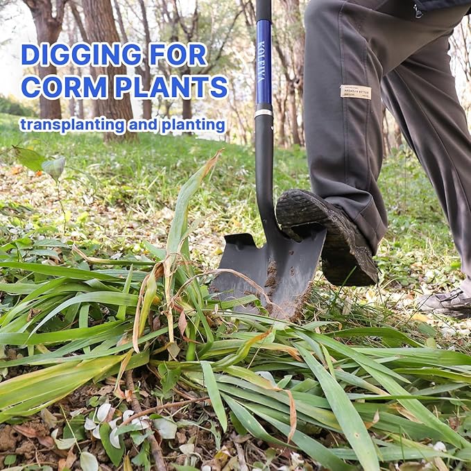 - Excellent Quality:The shovel head is made of high carbon steel material, which will not cause blade breakage during excavation, and is equipped with anti rust coating to extend its service life. Fiberglass handle is strong and light,It won't break like a wooden handle.