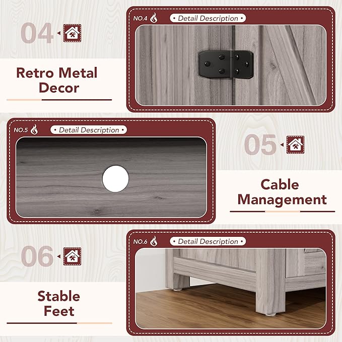 - Safe and Sturdy:High quality particle board with 5 feet on the bottom ensures more stability and can easily support up to 220 pounds. Metal handles are designed for easy access to items in closed cabinets and 2 cable management openings keep cords organized.