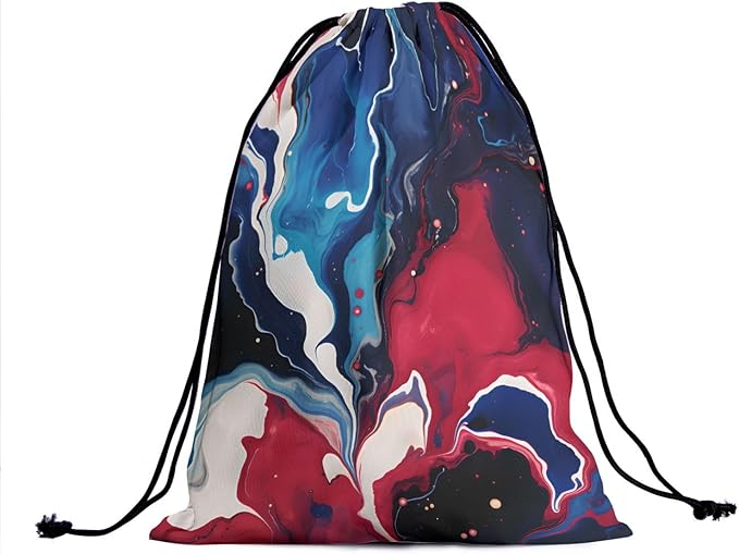 - 【SPACIOUS CAPACITY】 9.25 inches (W) * 12 inches (H). This blue red marble drawstring bag has enough capacity to store the personal items needed for exercise and fitness at ordinary times, such as grip, accessories, cosmetics, bottles, shoes, clothes, small electronic products, etc.