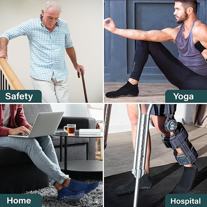 Muezna Men's Non-Slip Yoga Socks, Anti-Skid Pilates, Barre, Bikram Fitness Hospital Slipper Socks with Grips