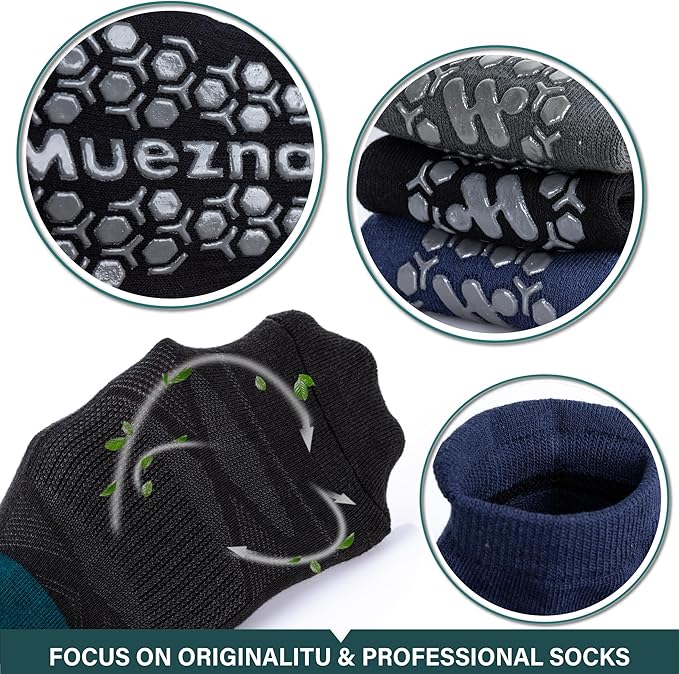 Muezna Men's Non-Slip Yoga Socks, Anti-Skid Pilates, Barre, Bikram Fitness Hospital Slipper Socks with Grips