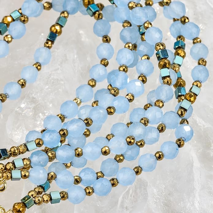 - Spiritual Aquamarine Bracelet: Featuring authentic Aquamarine, this bracelet embodies tranquility, clarity, and communication. Aquamarine is revered for its calming energy, promoting inner peace and serenity. It enhances clarity of thought and communication, making it easier to express oneself with honesty and compassion. It is very suitable for people who seek emotional balance and want to deepen their connection with others
