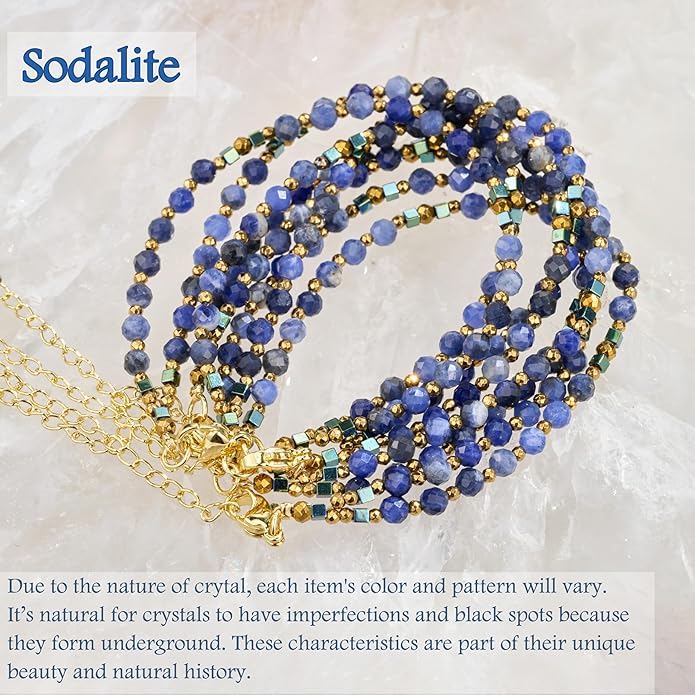 - Chakra Sodalite Bracelets: Resonating with the third eye and throat chakras, Sodalite facilitates communication and intuition. It harmonizes the third eye, amplifying intuitive abilities, and aligns with the throat chakra for clear expression. Ideal for enhancing intuition, improving communication skills, and providing support for those in need of emotional ing and self-discovery