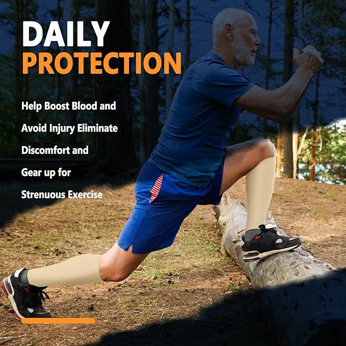 - â€ïžăSOFT AND BREATHABLE FABRICă- Crafted from lightweight and breathable fabric, our compression sleeves keep an optimal temperature, wick moisture away from your skin to ensure you feel fresh and comfortable. They fit closely from your ankle to knee, energize your skin. These compression socks are easy to care for and won't be worn out in daily life. They are durable and machine wash.