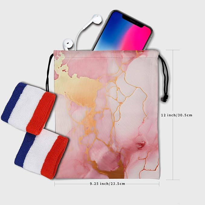 - 【SPACIOUS CAPACITY】 9.25 inches (W) * 12 inches (H). This marble drawstring bag has enough capacity to store the personal items needed for exercise and fitness at ordinary times, such as grip, accessories, cosmetics, bottles, shoes, clothes, small electronic products, etc.
