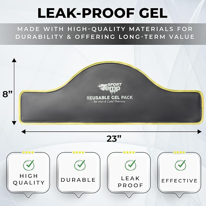 - Durable Design: Sport Temp's large ice pack wrap is crafted for durability, featuring high-quality binding that prevents leaks or tears. The non-abrasive exterior is gentle on the skin, and the sectional construction ensures even gel distribution for a more effective and user-friendly application.