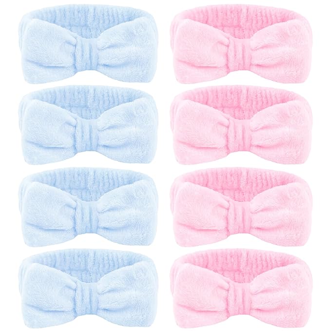 - Durable: These skin care headbands bulk including 4 pcs pink spa head bands and 4 pcs blue spa headbands. Cute bow design, you can sharing these headband with your sisters, family and friends. pink spa headbands are the necessary hair accessories for spa party & bachelorette party.
