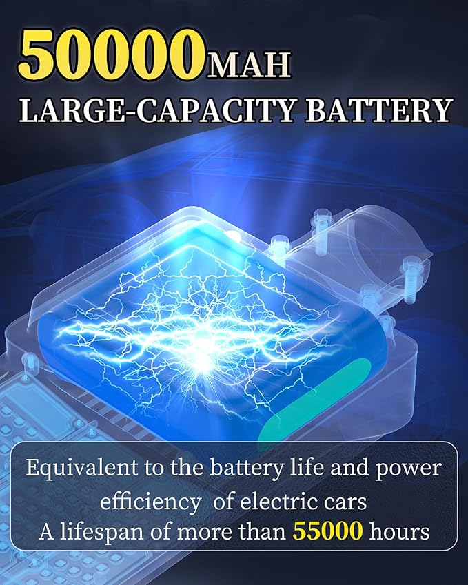 - 【50AH Large Capacity Battery & Power Capacity Indicator Light】The solar street light has a built-in 50000mAh lithium battery, which is more stable and durable. Equipped with 2 solar panels, compared with ordinary solar lights, our lights can absorb twice the solar energy during the day, convert it into double electricity and store it, and output it in the form of light energy at night. With 4 power capacity indicator light, more intuitively understand the remaining power of the lamp during use.