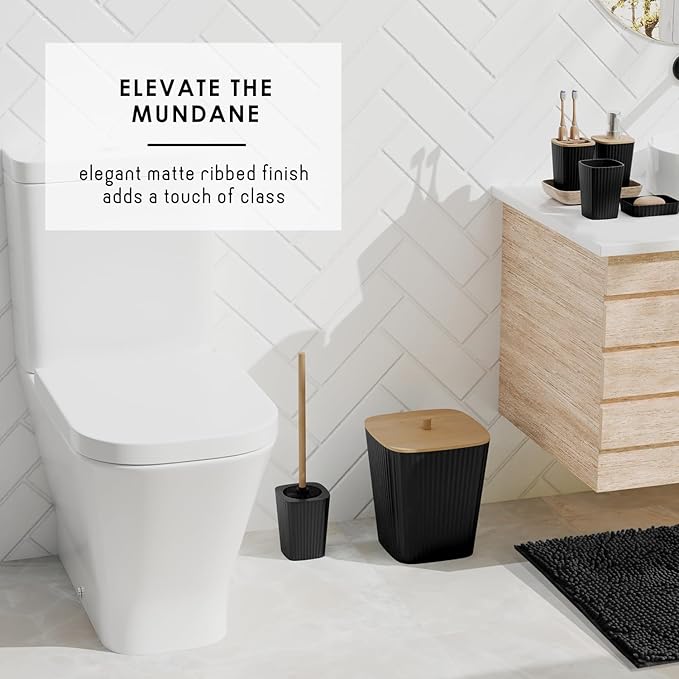 - Black Bathroom Accessories Set: Update your bathroom set with black bathroom decor, creating a stylish haven with a black bathroom rug set and bamboo bathroom accessory set.