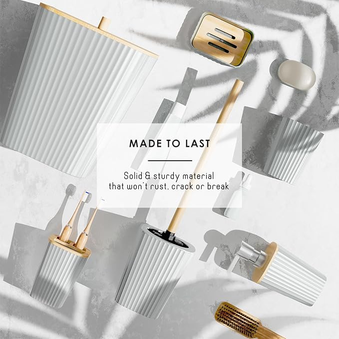 - White Bathroom Accessories Set: Update your bathroom set with White bathroom decor, creating a stylish haven with a White bathroom rug set and bamboo bathroom accessory set.