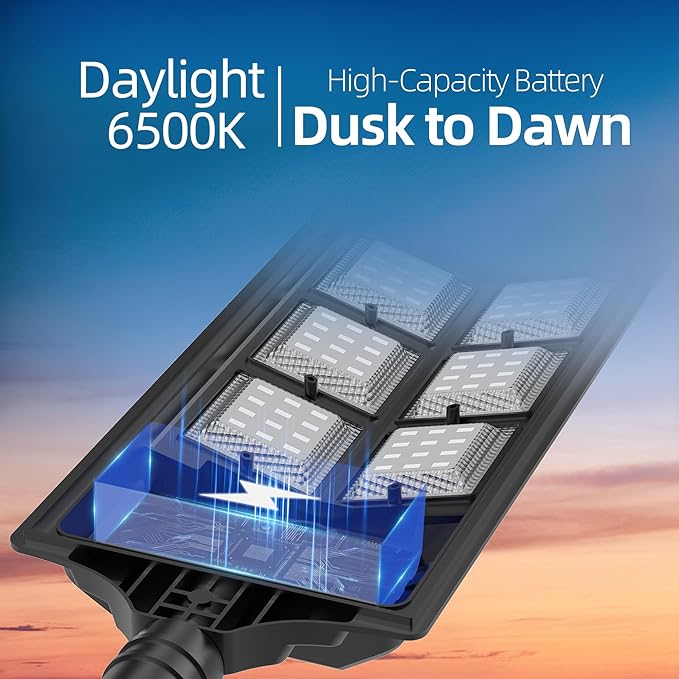 - 【6500K Daylight Light 】The solar street lights provides 6500K daylight white light and equipped high-efficiency LED lamp, delivering an incredibly bright. With a 240 degree wide-angle lighting, which can provide covering up to 100 square feet wider range of lighting and brighter light