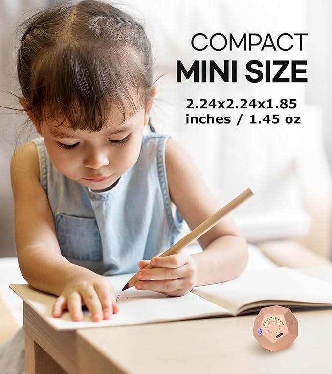 - 【 Compact small size 】 This mini cube timer measures 2.24 x 2.24 x 1.85 inches and weighs only 1.45 ounces. The size fits in the palm of your kid’s hand, making it easy to carry and slips into the pocket or bag.