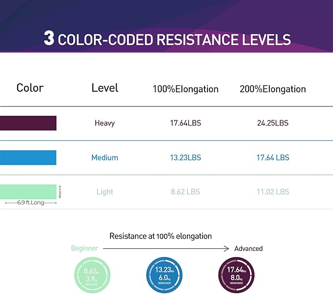 - 【Fun & Easy To Use】 The Bands are Perfect for Resistance Training and Rehabilitation, Which Provides Both Positive and Negative Force. You Can Take a Couple Wraps Around Your Hands for More Tension and a Secure Grip. or Just Tie a Knot, For Use as a Loop Band, and also You Can Double Them Up for Even More Resistance. The Bands are Vibrantly Color-Coded, Once You are Ready for a More Challenging workout, You can Move Up to The Next Color.
