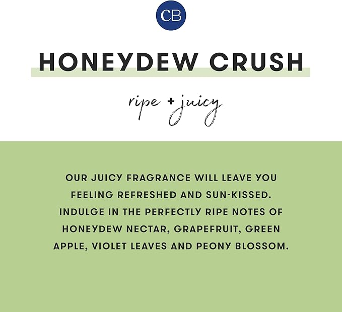 - Honeydew Crush Scented Candles - Our juicy fragrance will leave you feeling refreshed and sun-kissed. Indulge in the perfectly ripe notes of honeydew nectar, grapefruit, green apple, violet leaves and peony blossom.