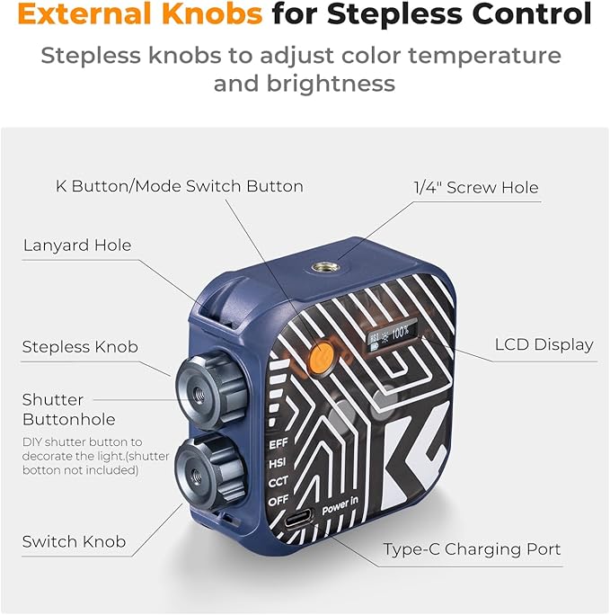 - 【Thoughtful Product Design】Featuring a built-in LCD display, you can clearly view the current parameter values of the light, making it easy for you to operate and adjust. The infinitely variable metal knob design provides a comfortable adjustment feel, allowing you to fine-tune to a more precise value.
