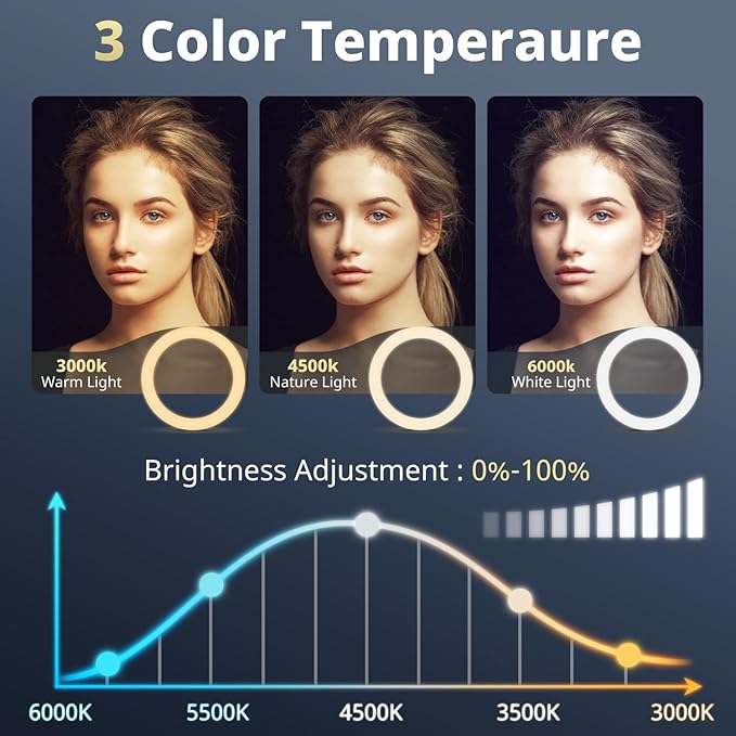 - 【3 Normal Colors and 10+8 Color Modes】Selfie ring light has Warm Light/White Light/Daylight/Red/Orange/Golden Yellow/Green/ Green/Ice blue/ Light blue/ Dark blue/Purple/ Pink; RGB lights offer various color modes such as chase, flash, color-changing, dynamic, breathing, and illusion.