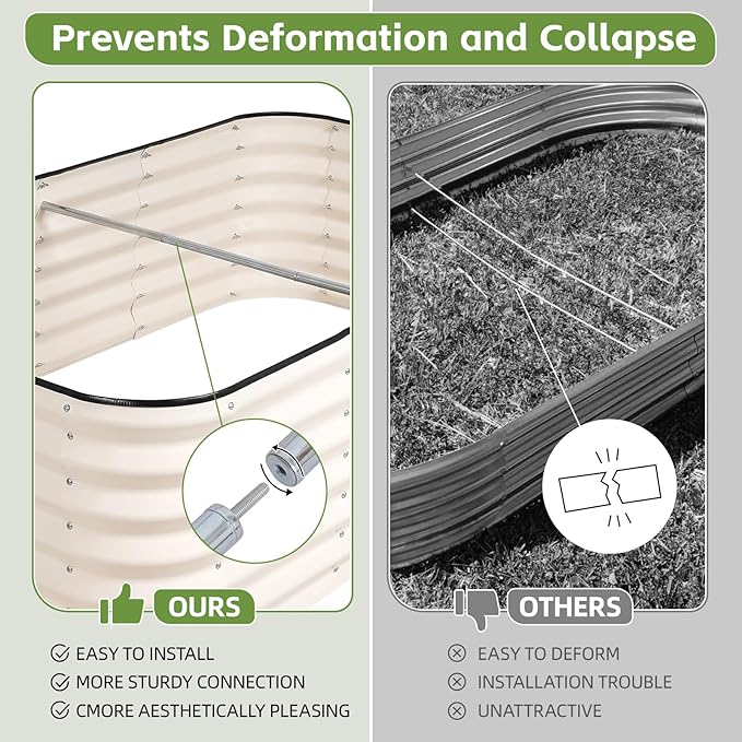 - 【 Not easy to deform】 Our oval outdoor garden box is made of 0.6 mm double-layer corrosion-resistant galvanized sheet, and the surface is coated with anti-rust coating to ensure long-term use. Equipped with optimized support rods, easy to install and flexible, durable and not easy to break, providing excellent support after soil filling.