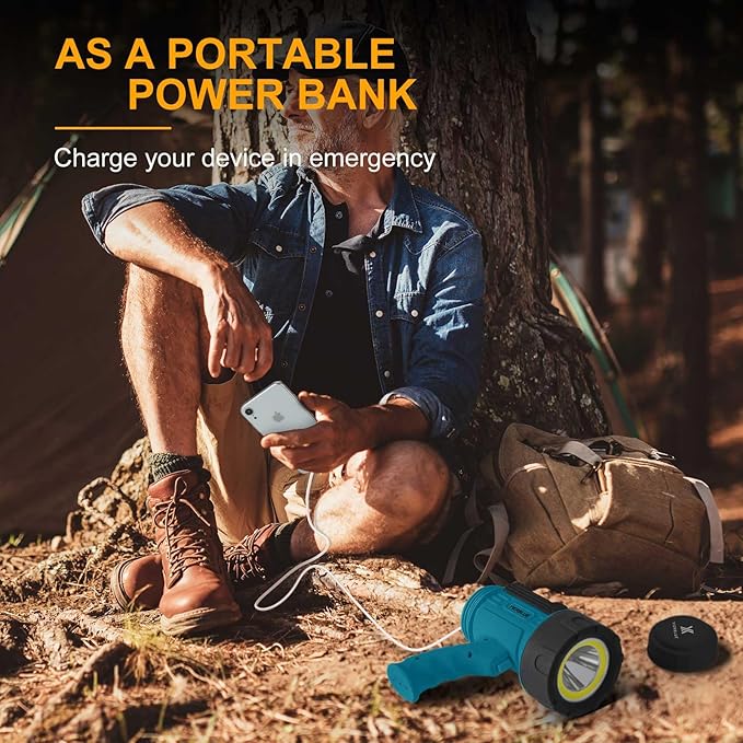 - LONG TIME LIGHTING & POWER BANK: Built-in rechargeable batteries, YIERBLUE’s proprietary battery technology give you up to 9 hours lighting on lower settings, 3 hours lighting on higher settings. An output port built into the spot light can be used as a power bank to charge your devices in emergency.