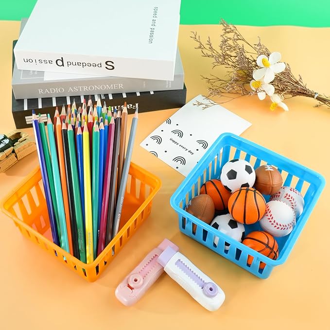 - These small pencil baskets are suitable for organizing writing utensils and art supplies for classroom organization, classrooms, homeschool programs, preschools, desks or art studios; Keep crayons, markers, pencils, scissors, rulers, markers and erasers neatly organized