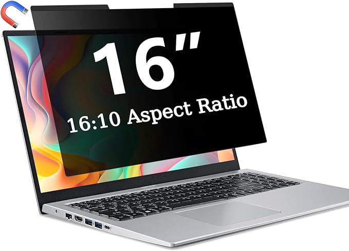 - 4.【Perfect for Travel and Open Workspaces】:Laptop Privacy Screen is the ideal solution for healthcare providers, mobile workers, commuters, students, and business travelers. now you can stay compliant and safeguard sensitive corporate Information while working in airplanes, subways, airports, and public areas. Magnetic 16 inch Laptop Privacy Screen protector also helps keep your screen safe from dust and scratches from daily use.