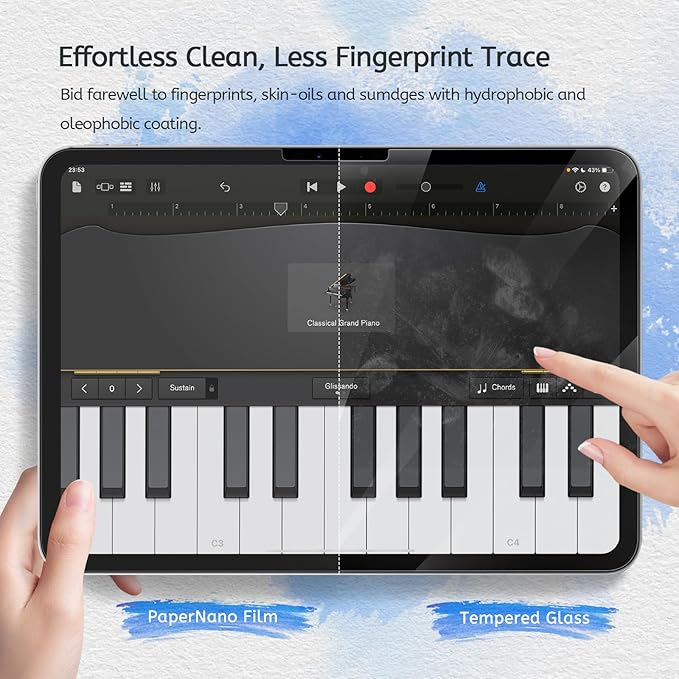 - New Version Paperfeel: New Version Paperfeel screen protector adopts the emerging paper nanotechnology, and the micro-nano flexible particles on surface provide you with a paper-touch screen, allowing you to create freely. The paper nano surface of iPad Pro 11 2024 screen protector becomes an incredible canvas to make your writing and painting smoother, allowing the charm of paper to complement your artistic creation