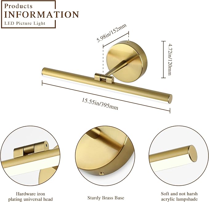 - PREMIUM QUALITY PICTURE LIGHT:Full metal construction for outstanding durability wall light;Reliable quality and safe usage. Low heat emission best preserves your artwork throughout its long service life.long lasting wall lights for pictures.
