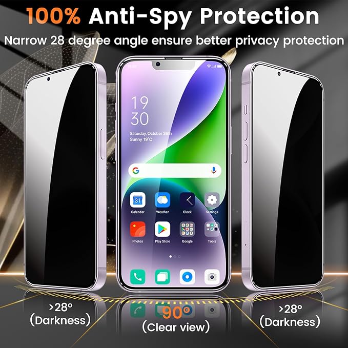 - 【Scratch Resistant, Anti-Fingerprint】 100% new precise laser cut tempered glass, with 9H hardness tempered glass, protecting your screen from daily wear and tear like. This privacy glass screen protector is coated with a Hydrophobic and oleophobic clear layer making it anti-fingerprint and smudges.