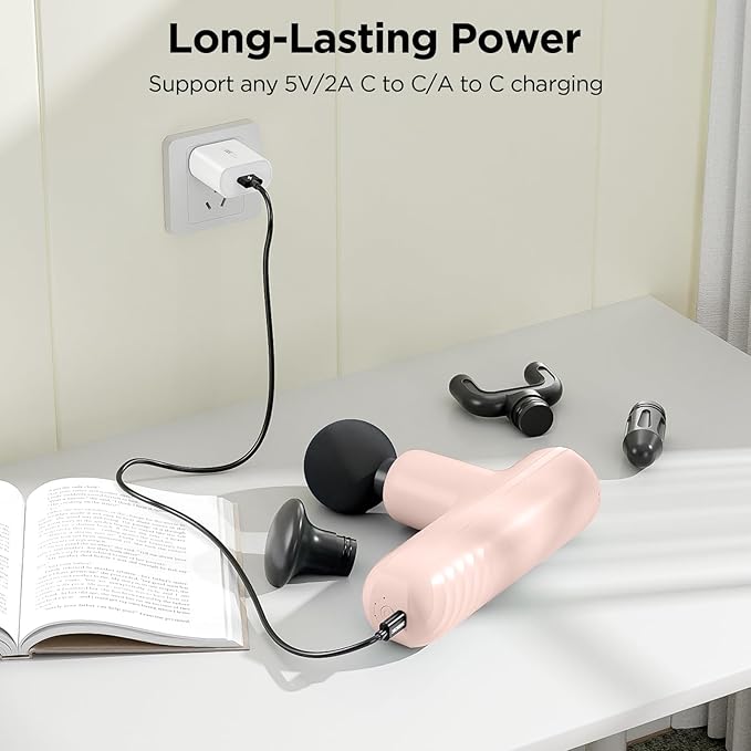 - Effortless 5V/2A USB-C Fast Charging: Our deep tissue percussion massage gun features convenient USB-C charging compatibility, allowing you to recharge it with ease using a regular phone adapter or 5V/2A adapter (not included). Whether you're at home, in the gym, or at the office, you can count on uninterrupted performance