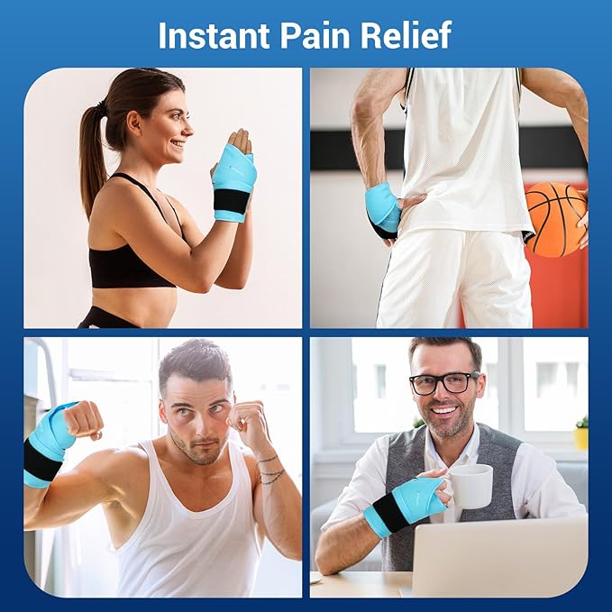 - Fully Hand Wrist Ice Wrap Targeted Carpal Tunnel Pain Relief: This Comfytemp larger wrist ice pack wrap is contoured to the palm and wrist perfectly with it's longer size of up to 24.5", ensuring maximum effectiveness in relieving hand injuries caused by swelling, sprains, bruises, and inflammation. This gel wrist ice brace provide active pain alleviation with hot cold compression for a range of conditions, including rheumatoid arthritis, tendinitis, carpal tunnel pain, sports injuries, etc.