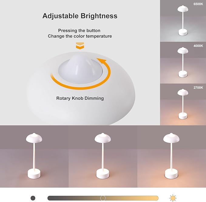 - Portable Cordless Design for Versatility Using: This lamp is a practical cordless rechargeable table lamp with a simple modern design and a physical button switch. Its adorable mushroom design not only provides better eye protection but also creates a comfortable and romantic atmosphere. With multifunctional features including portability, waterproofing, 3 color temperatures, stepless dimming, rechargeability, and durability, it is the perfect desk lamp for both indoor and outdoor settings.