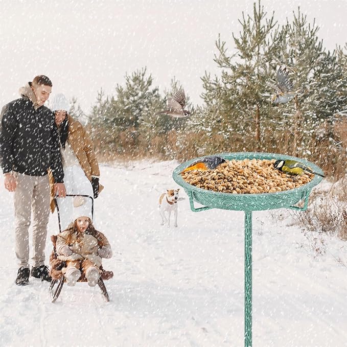 - 【Metal Bird Feeder Stand】 The whole bird bath and the pedestal are made of premium quality metal and and covered with safety coating, long-lasting and sturdy, can resist rain, water, and other weather, withstand strong sunlight and cold temperatures.