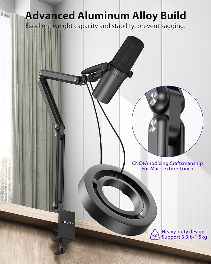 - Excellent Carrying Capacity and Stability: This mic stand has a reinforced and thickened arm section to ensure reliable stability and support, preventing wobbling, sagging, and noise, with a maximum weight capacity of 3.3lbs (1.5 kg). Perfect for podcasting, streaming, gaming and home office. Compared with other microphone stands or spring microphone stands, KU XIU pursues higher quality and manufacturing process, so our mic arm stand have excellent shock absorption and stability.