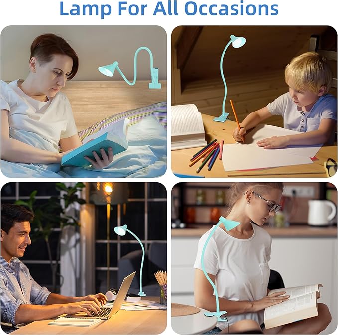 - 💡【STRONG METAL CLAMP & 360° FLEXIBLE GOOSENECK】This LED desk lamp featured with a pretty sturdy clamp, is easy to clip on your desk, bed headboard or other objects. Durable flexible gooseneck allows you to adjust your clip light with ease and to direct the light wherever you want.