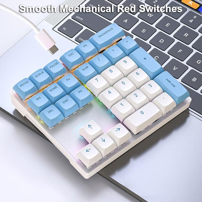 Mechanical Numpad Rainbow Backlit Smooth Red Switches Wired USB Number Pad 33-Key NKRO Numeric Keypad with XDA PBT Keycaps External Keyboard Num Pad for Laptop, Mac - White Blue