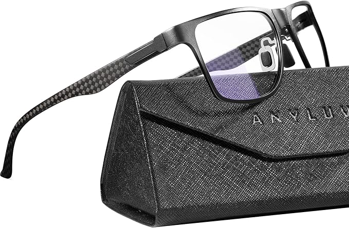 - Premium Carbon Fiber Material: Designed for men, these reading glasses are crafted from lightweight carbon fiber, offering maximum comfort and durability. They can be worn for extended periods without discomfort. Compared to traditional metal-frame blue light glasses, carbon fiber frames provide superior tensile strength, lighter weight, and higher heat resistance.