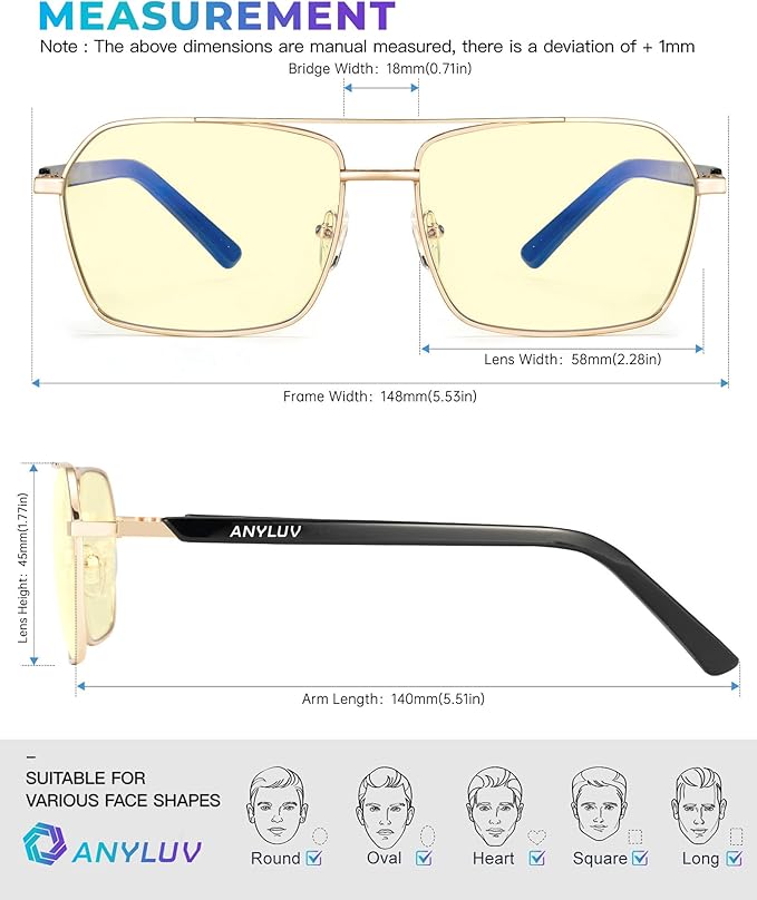 • 💻Trendy Blue Light Glasses⏩ Designed with square slim frame and ANYLUV logo decor temple, very exquisite and fashion style. These anti blue light glasses help show a sophisticated look that complement any outfits, whether you're working or casual daily life