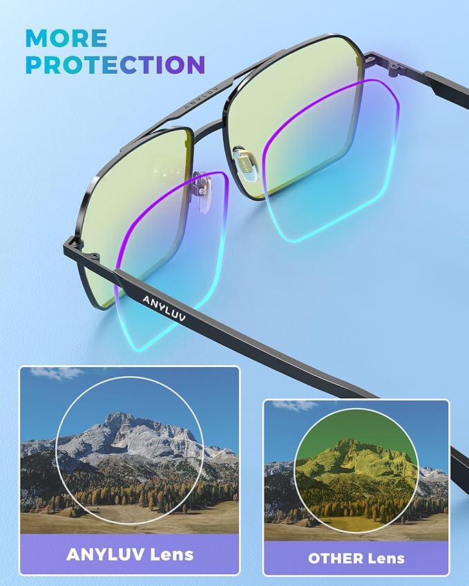 - 💻Trendy Blue Light Glasses⏩ Designed with square slim frame and ANYLUV logo decor temple, very exquisite and fashion style. These anti blue light glasses help show a sophisticated look that complement any outfits, whether you're working or casual daily life