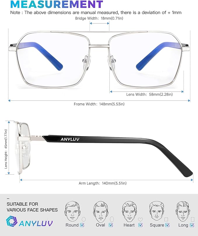 - 💻Trendy Blue Light Glasses⏩ Designed with square slim frame and ANYLUV logo decor temple, very exquisite and fashion style. These anti blue light glasses help show a sophisticated look that complement any outfits, whether you're working or casual daily life