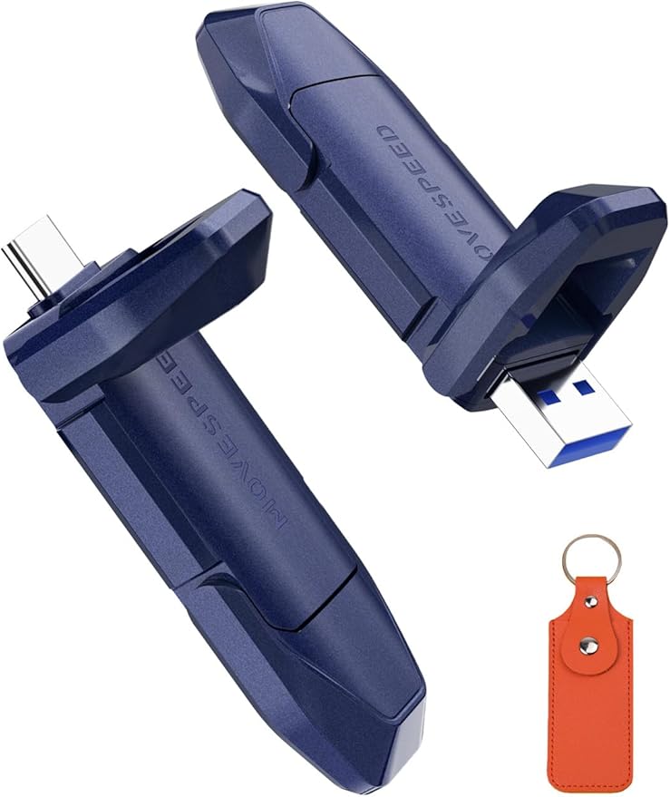 - 【Wide Compatibility and Easy to Use】This USB 3.2 Gen2 flash drive is universal for Android USB-C Phone, iPhone15 and 16 series, desktop, laptop, car audio system, smart TV and More. Real Plug and Play, extremely simple to use. Plugs directly into your android phone or computer, no cable and software required. The usb c flash drive comes with a keychain leather case for easy portability and storage.