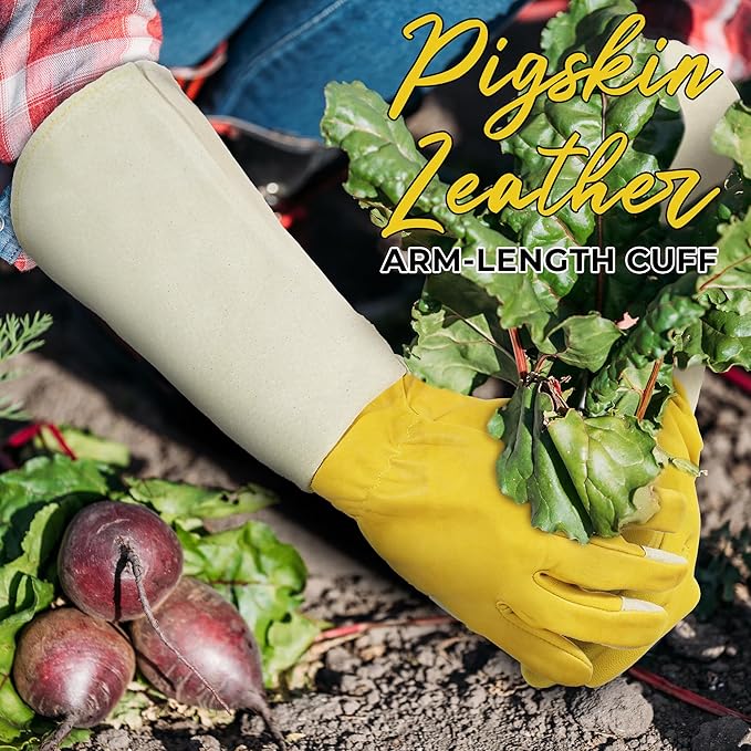 HANDLANDY Rose Pruning Gardening Gloves for Men Women, Thorn Proof Forearm Protection Leather Garden Gloves, Gardening Gifts for Gardeners (Yellow- goatskin, Medium (Pack of 1))