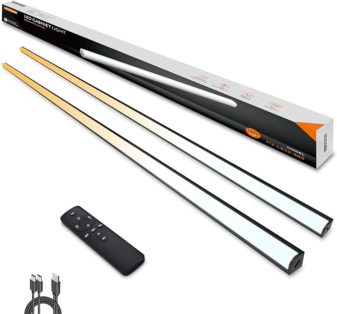 - 👍[Upgraded dimmable and color-adjustable closet light]: The under-cabinet light provides three different color temperatures ((3000K / 4500K / 6000K), which can be switched through the light switch or remote control. It uses 68 energy-saving LED lights and no glare With a frosted cover, the display index of the cabinet light reaches 90, the light is even and does not hurt the eyes. In addition, unlike the fixed brightness of other products, our indoor sensor lights can be infinitely dimme