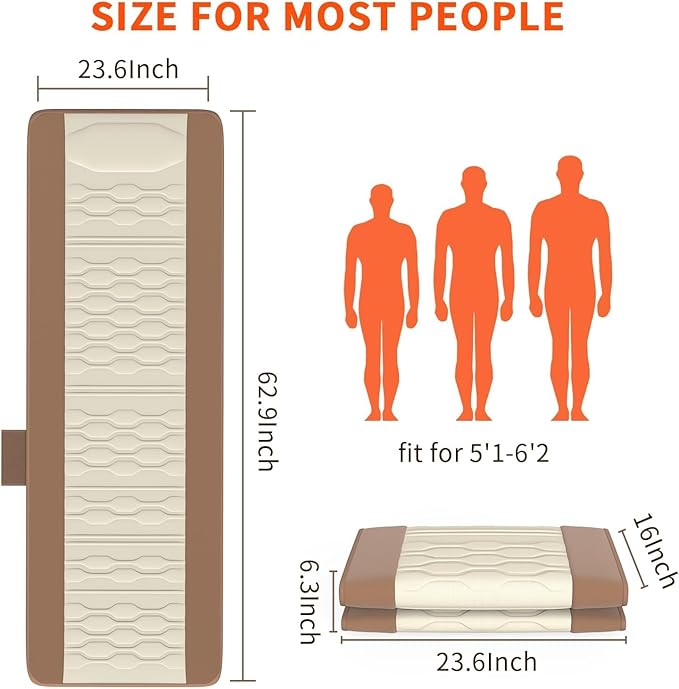 - Foldable Novel Design--The massage mats for full body is flexible & foldable, the unique handle design can make you carry it anywhere easily. This heated lumbar massage used a beige and brown color mix design to keep the versatility while making the mat look more design-oriented. We have improved the fabric so that the mattress mat is less wrinkled after use, so we recommend that you spread it out like a quilt before using it.