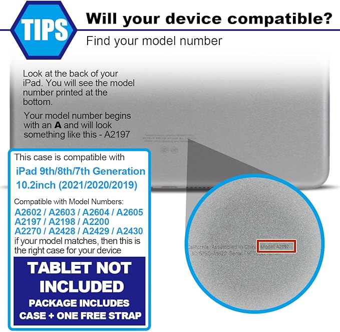 - Compatibility: Exclusively designed Shockproof Case for iPad 9th/ 8th/ 7th Generation 10.2 inch (Model includes: A2602 A2603 A2604 A2605 / A2197 A2198 A2200 / A2270 A2428 A2429 A2430) 2021/2020/2019 Released. NOT fits for other Generations iPad. Please confirm the product before purchase