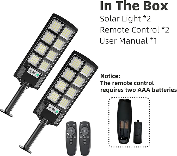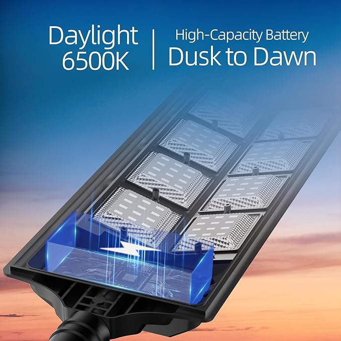 - 【6500K Daylight Light】The solar street lights provides 6500K daylight white light and equipped high-efficiency LED lamp, delivering an incredibly bright illumination. With a 240 degree wide-angle lighting, which can provide covering up to 100 square feet wider range of lighting and brighter light