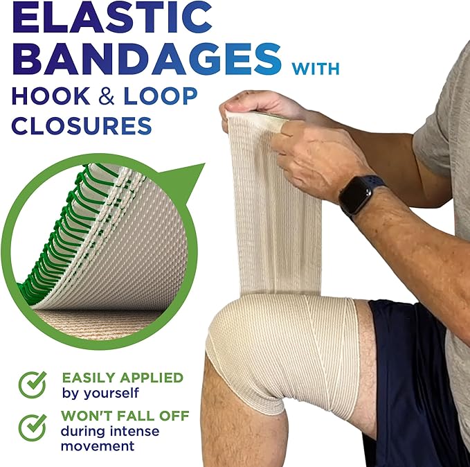 - HIGH-QUALITY MATERIALS — Our wraps are reusable and made of sturdy, durable polyester with triple-stitched self-closures. Each crepe bandage stretches up to 15ft and provides long-lasting, tight support even after multiple uses, and its breathable material ensures a comfortable fit.