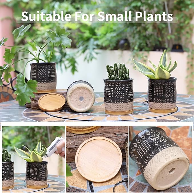 - Ceramic Saucer - The matched ceramic saucers works great for collecting excess water and soil spillage. Easy to move, you can change the position at any time. You also could use the pot without these saucers if you place the pots outdoor.