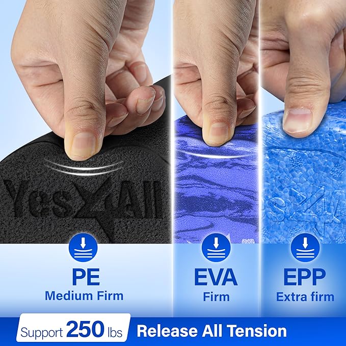 - MEDIUM FIRM PE MATERIAL: Experience the medium firmness of our foam roller stretcher, a must have gym accessory for all fitness enthusiasts; The comforting compression it provides delivers a gentle and soothing relaxation to those tight areas as you roll